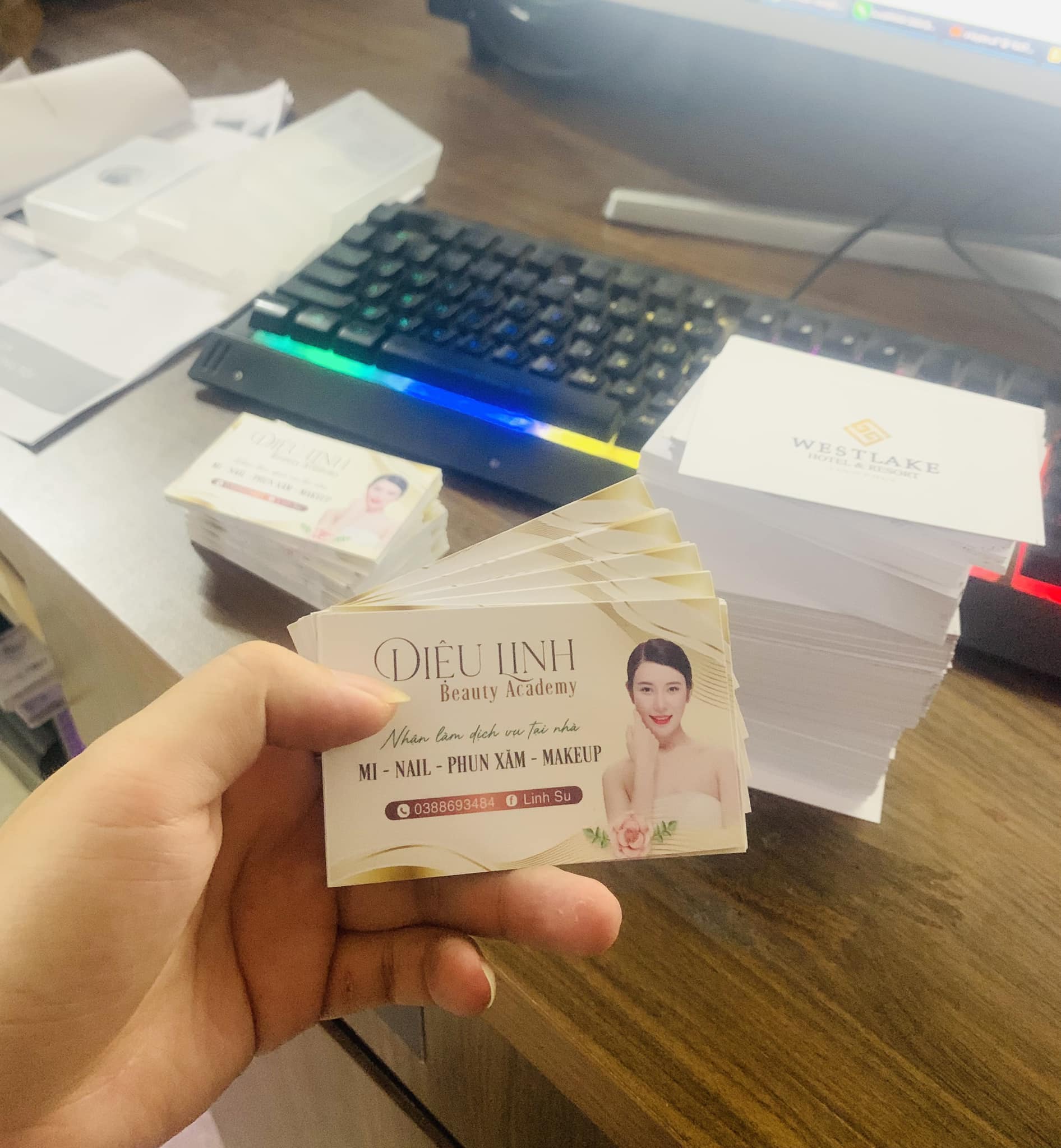 Mẫu In Danh Thiếp Dịch Vụ Thẩm Mỹ Tông Hồng là công cụ xây dựng thương hiệu cá nhân lý tưởng cho các chuyên gia làm đẹp, thẩm mỹ viện (như Diệu Linh Beauty Academy). Thiết kế sử dụng tông màu hồng pastel và vàng đồng nhẹ nhàng, thể hiện sự tinh tế, nữ tính và tạo sự tin tưởng tuyệt đối cho khách hàng.